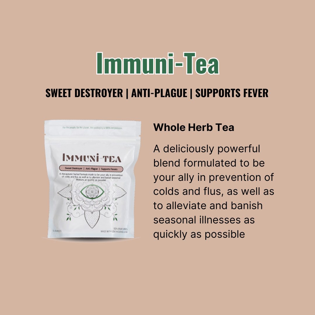 Immuni-Tea encourages heath-giving fevers to run their course with more ease, to support the body's innate defense mechanisms. This tea also aims to increase lymphatic function, to help boost the "good guys" and destroy the "bad guys" running through the system. As with any cold or flu, it is important to stay VERY hydrated. Drink extra water and fluids.
