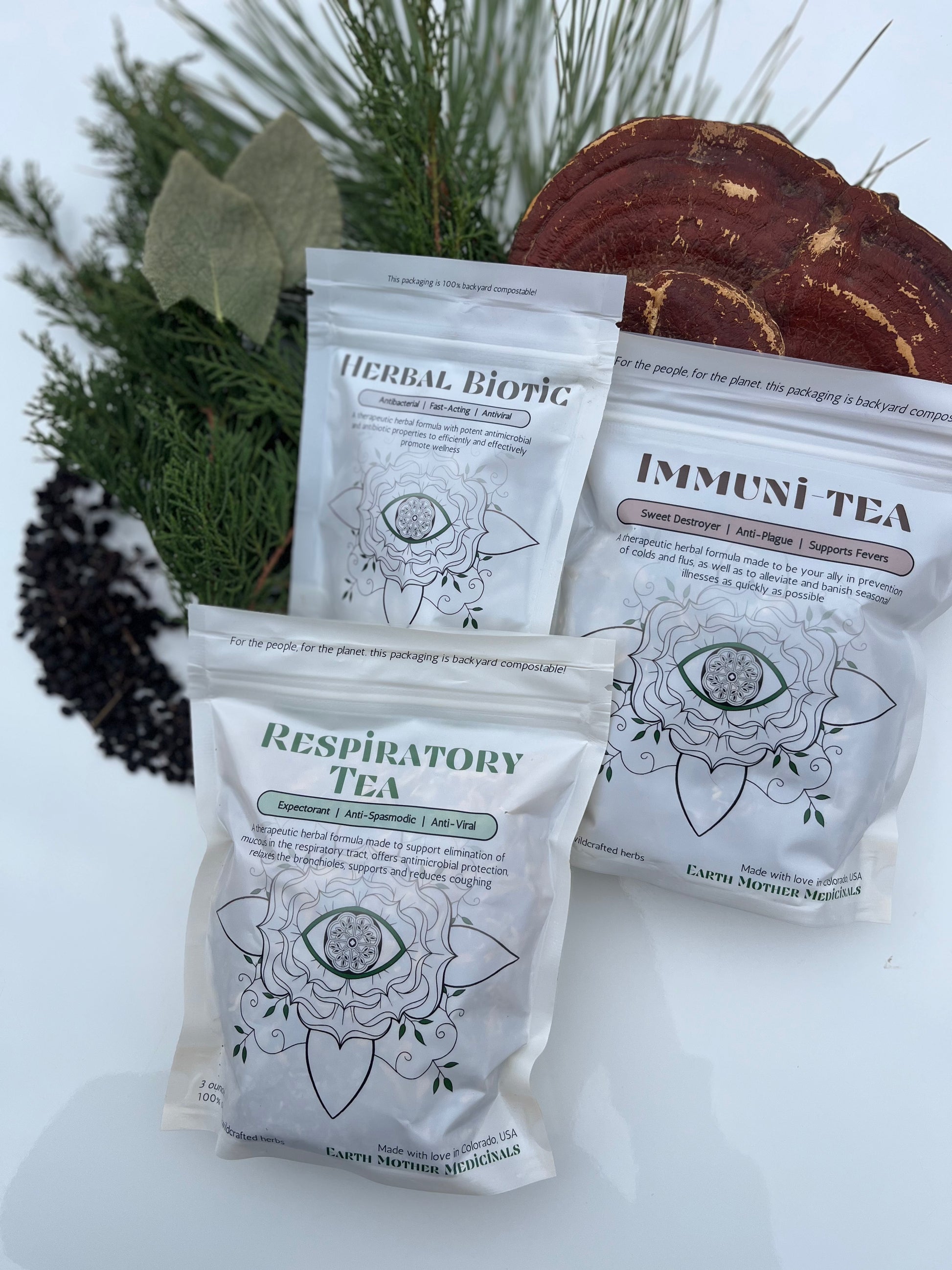 This box combines our potent, therapeutic formulas: Immuni-Tea, Respira-Tori Tea and Herbal Biotic.